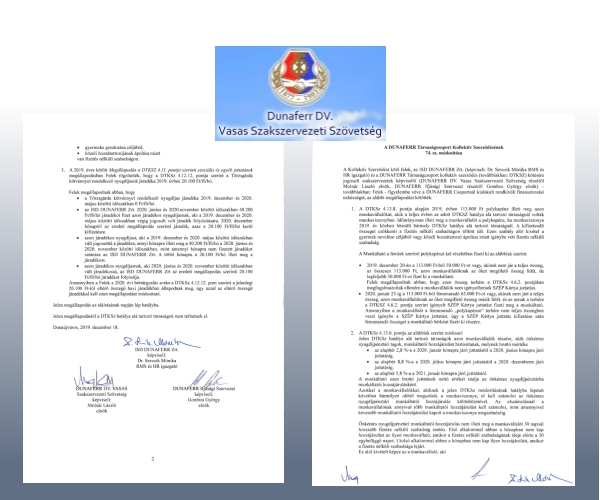 2019. december 14-én a munkáltató újabb a „pulykapénz” kifizetésével kapcsolatos módosítási javaslatot nyújtott át részünkre.